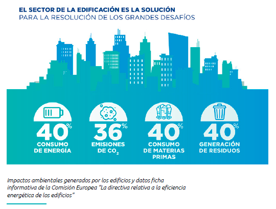 El sector de la edificación se convierte así en un actor clave como parte de la solución del problema para alcanzar la neutralidad climática marcada por la Comisión Europea para el año 2050, ya que es precisamente este sector el mayor consumidor de energía y de recursos en la UE. Además, más del 94% de los edificios actuales en Europa seguirán en pie en 2050, debido a la baja tasa de demolición. La mayoría de estos edificios son antiguos e ineficientes energéticamente, con más de la mitad de ellos en las tres clases de energía más bajas (E, F y G) marcadas por la UE.