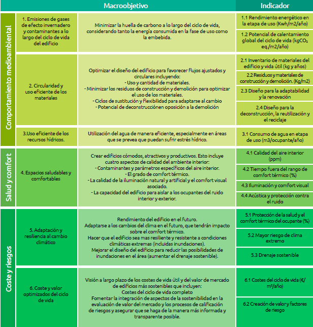 Con esto, se persigue facilitar la adopción de medidas a nivel de edificio que puedan contribuir claramente a la consecución de objetivos más generales de la política medioambiental europea, fomentando dos herramientas esenciales: el análisis del ciclo de vida (ACV) y el análisis del coste del ciclo de vida (ACCV). Está estructurado de la siguiente manera: